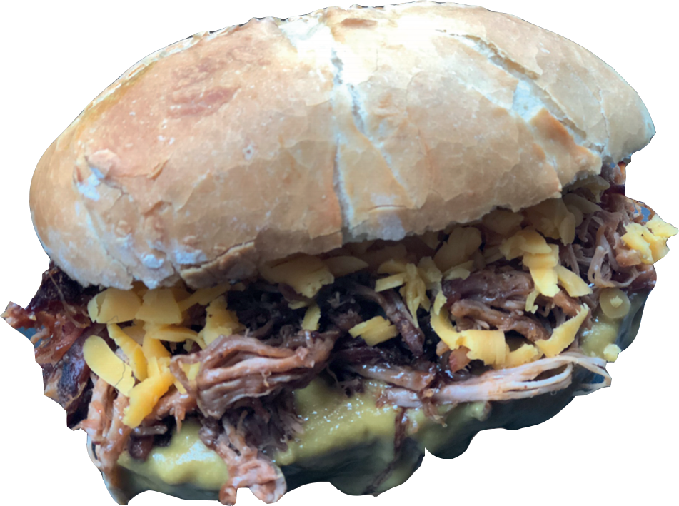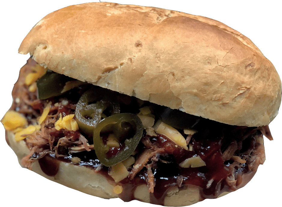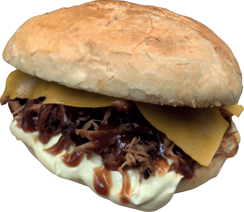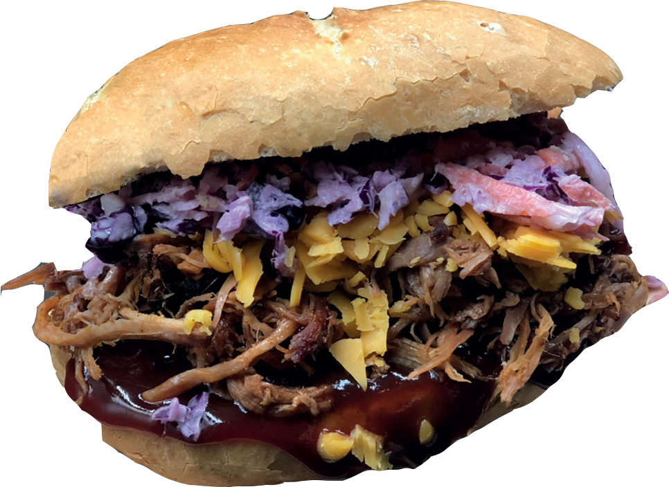 Az igazi BBQ klasszikus: Saját füstölésű, szaftos tépett sertéshúsunk házias coleslaw-val, olvadó cheddar sajttal és házi BBQ szószunkkal egy szendvicsben. A mennyország íze.”