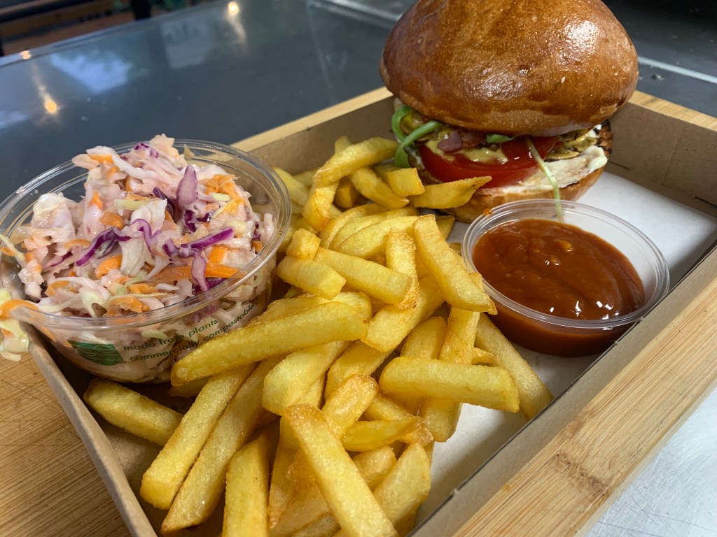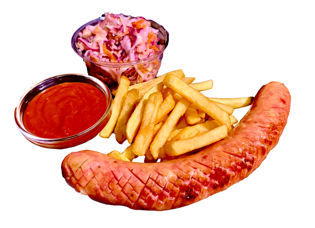 A magyar ízek találkozása az amerikai BBQ-val – zamatos, grillezett sajtos kolbászunk házi BBQ szószunkkal meglocsolva, mellé friss házias coleslaw és ropogósra sült burgonya. Tökéletes választás egy kiadós étkezéshez.